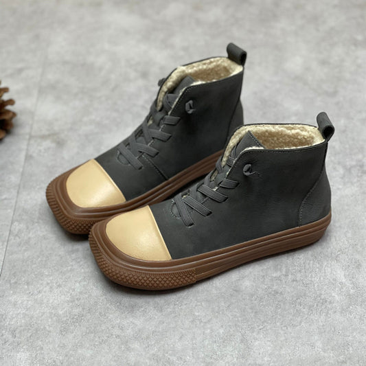 New Artistic Handmade Square Head Leather Women's Boots