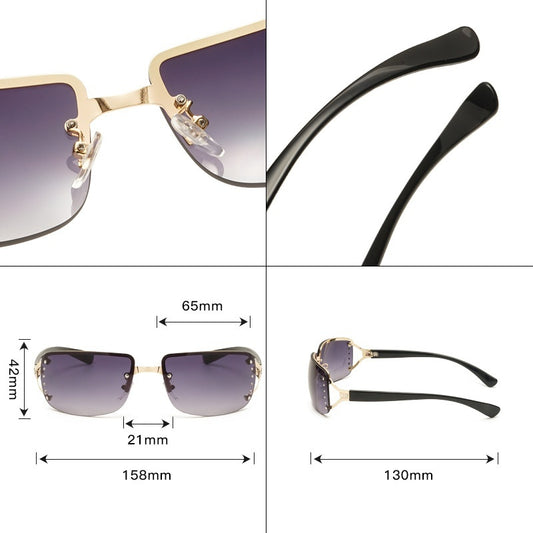 Metal Large Rim Sunglasses UV-proof Frameless Lens Sun Glasses