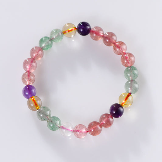 Natural Strawberry Quartz Round Beads Single Circle Bracelet Rainbow Color